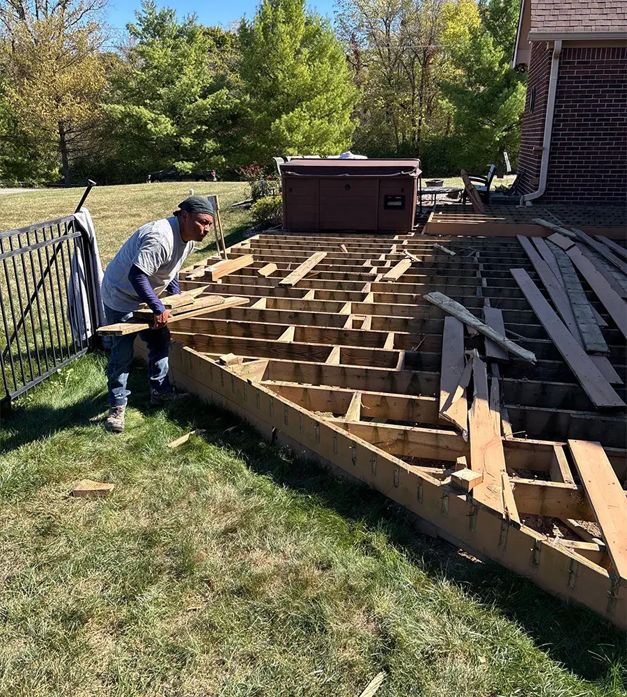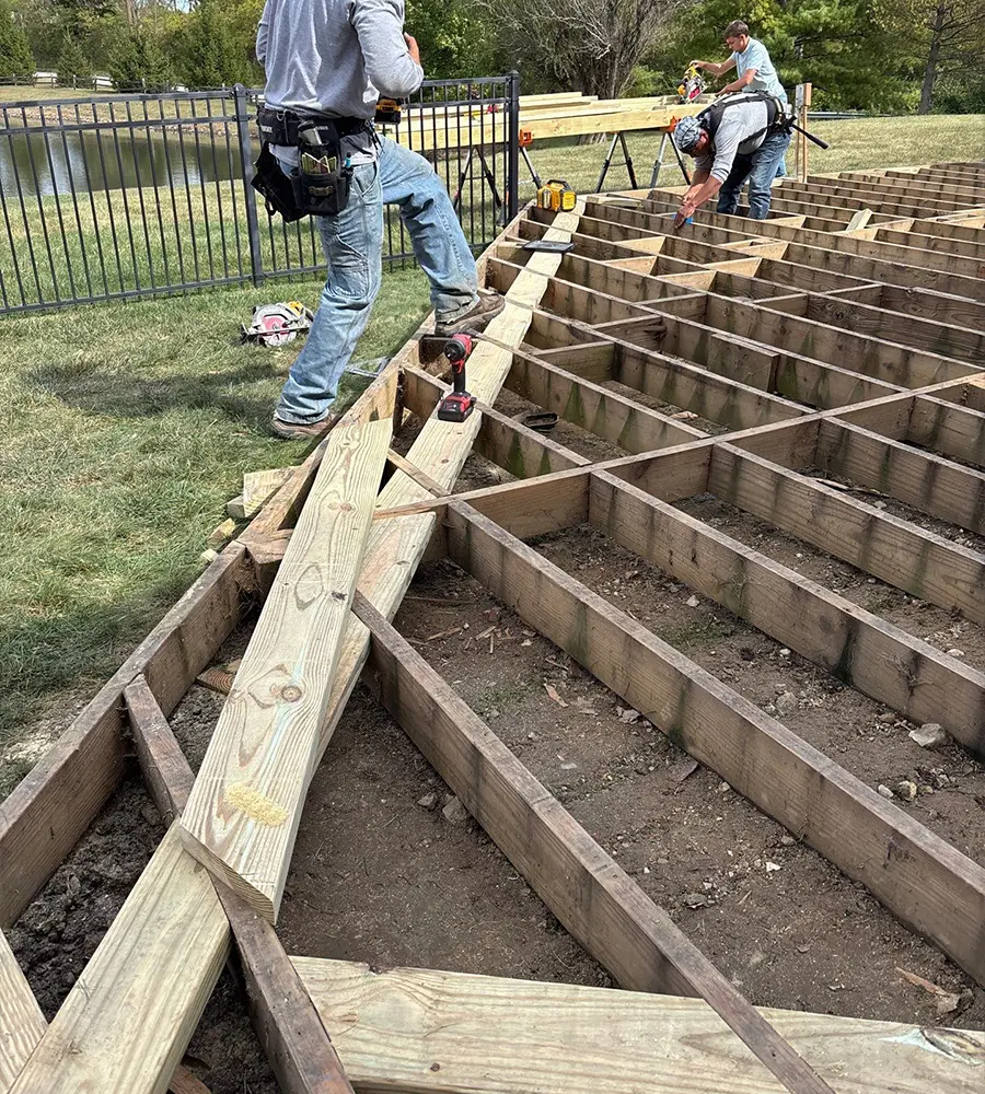This project was in Hendricks County, and as long as there are no changes to the structure (which were not) and 30 inches or less to the ground (which it is), then no permitting was required. If the new deck didn’t have the same footprint on the ground or if it was elevated above 30 inches, we would’ve need to pull a permit and do several inspections.